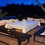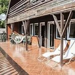 Half Of A Holiday Home, Huge Garden, Pond Szymbark med 2 sovrum, som ligger inom 15 minuters promenad från Upp- och nedvända huset, erbjuder gästerna en terrass där de kan koppla av.